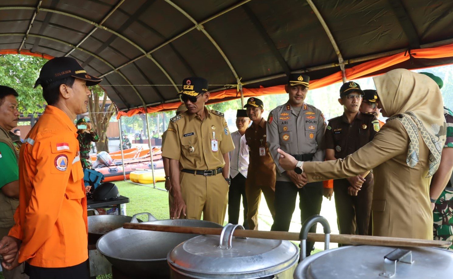 Apel diikuti oleh Forkopimda, TNI, Polri, Satpol PP, BPBD, PMI, pelajar, serta relawan dari berbagai organisasi masyarakat. Seusai apel, Bupati Eisti’anah bersama Forkopimda meninjau kesiapan peralatan penanggulangan bencana, seperti dapur umum, pelampung, perahu karet, dan kendaraan siaga.