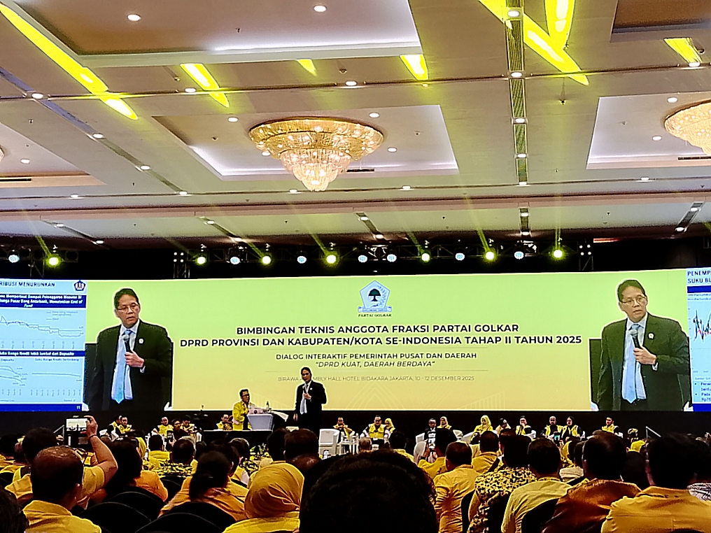 Menkeu Purbaya Yudhi Sadewa saat memberikan pembekalan dalam Bimtek Anggota Fraksi DPRD Partai Golkar Se-Indonesia di Jakarta[, Kamis (11/12/2025)/Foto: Info PublikIndoragamnewscom, JAKARTA-Menteri Keuangan (Menkeu) Purbaya Yudhi Sadewa terus mendorong perbaikan kinerja Direktorat Jenderal Bea Cukai (DJBC) dalam waktu setahun ke depan agar instansi tersebut tidak dibekukan.