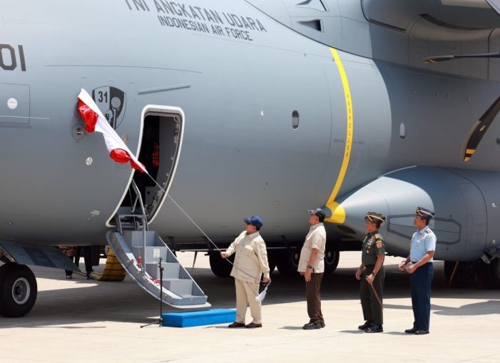 Presiden Prabowo Didampingi Menhan Sjafrie Serahkan Satu Unit Pesawat A400M Kepada TNI AU